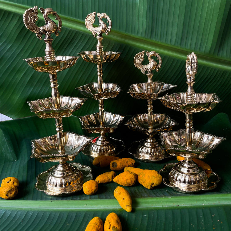 Mayil Brass Oil Lamp (3-Tier Ornate Kuthu Vilakku)
