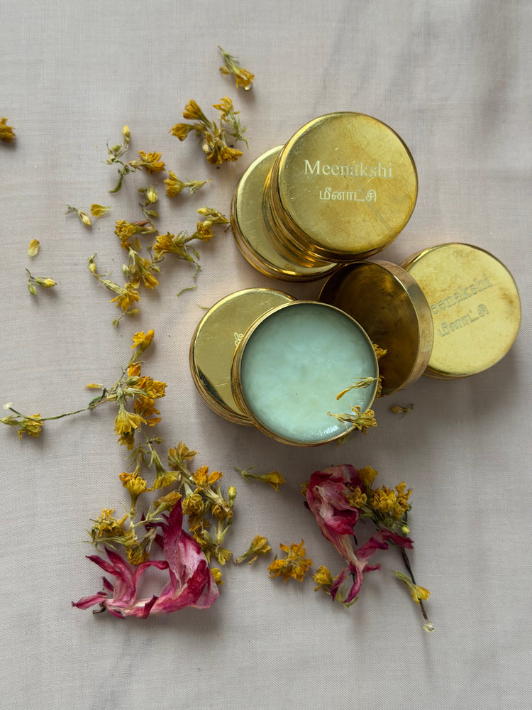 Each ritual is centered around an uncompromising botanical concentration, a potency rarely found in modern perfumery. Sourced from the ancient temple landscapes of South India, these essences are hand-poured into heavy brass vessels, designed to be kept close and used with intention. This is the art of anointment: a slow, soulful connection to the botanical spirits of the Tamilakam.